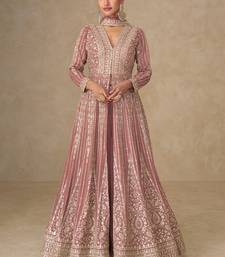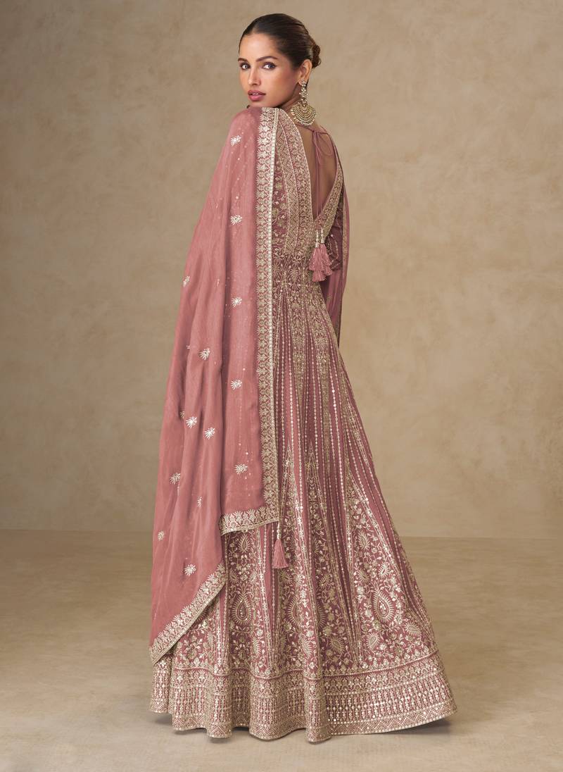 Blue embroided & sequines chinnon silk anarkali kurta palazzo suit- full stitched free size