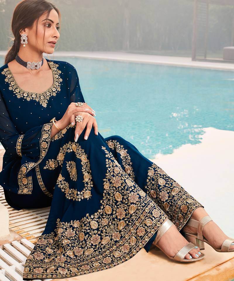 | • | Kameez | : | Color- Blue / Fabric- Georgette |