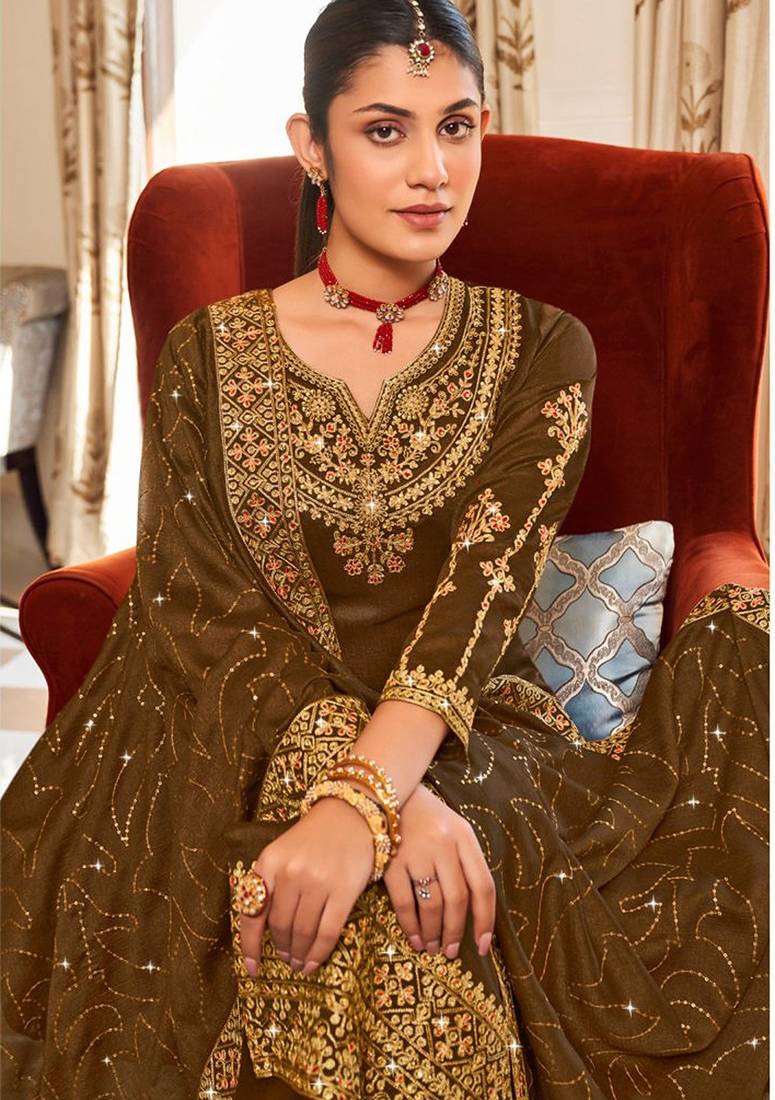 Brown art silk stone work semi stitched salwar suits suits size up to 42