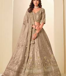 Brown art silk zari work semi stitched lehenga choli size up to 42
