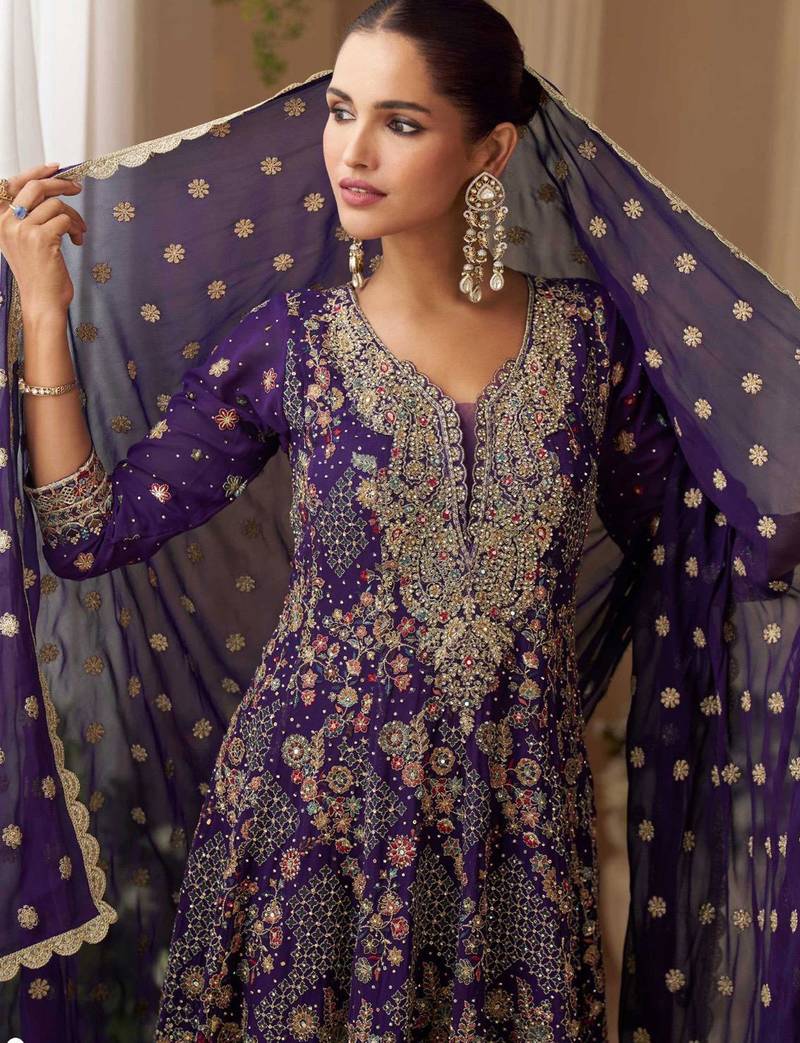 | Product Name | Deep Purple Embroidery Seroski Zarkan Georgette Anarkali Kurta Pant Full Stitched Free Size | |