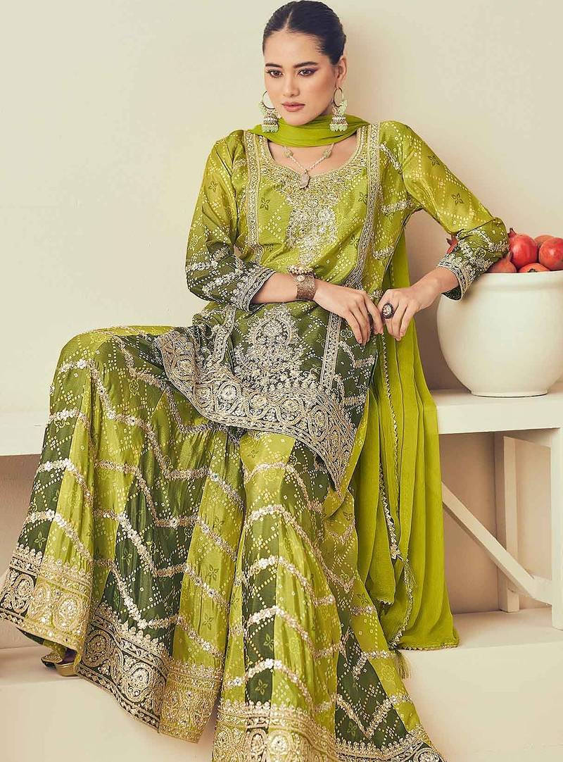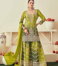Green chiffon sequins work semi stitched salwar suits suits size up to 42