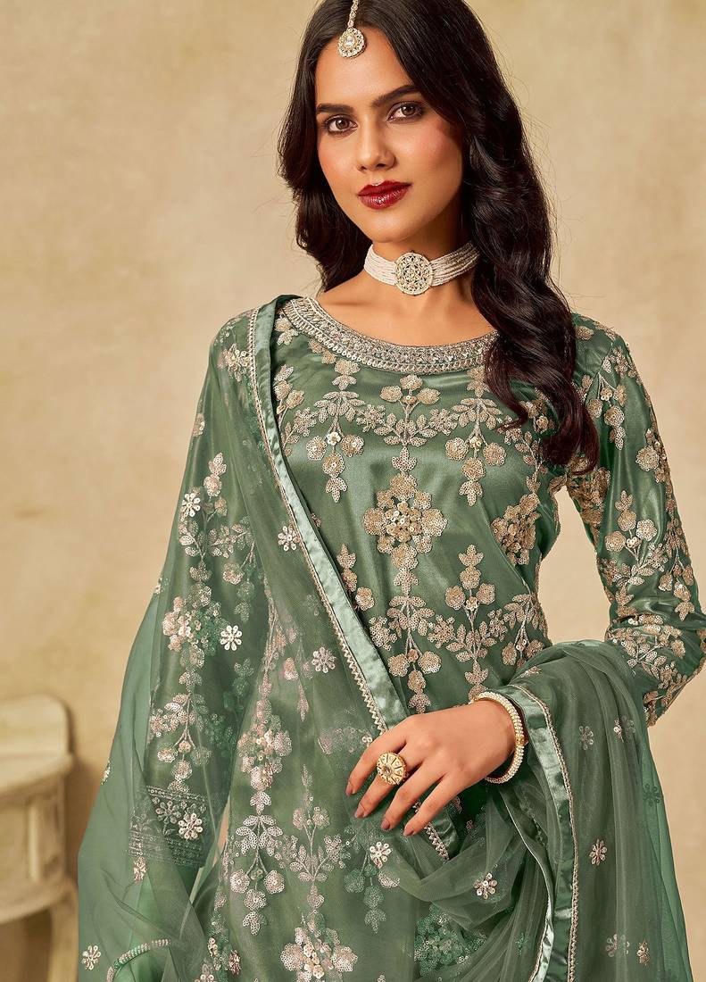 | Product Name | Green Net Sequins Work Semi Stitched Salwar Suits Suits Size Up To 42 | |