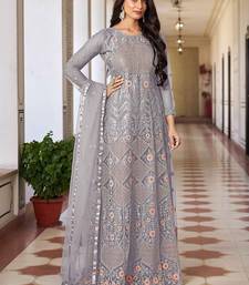 Grey net sequins work semi stitched salwar suits suits size up to 42