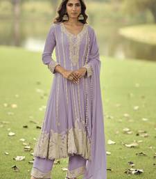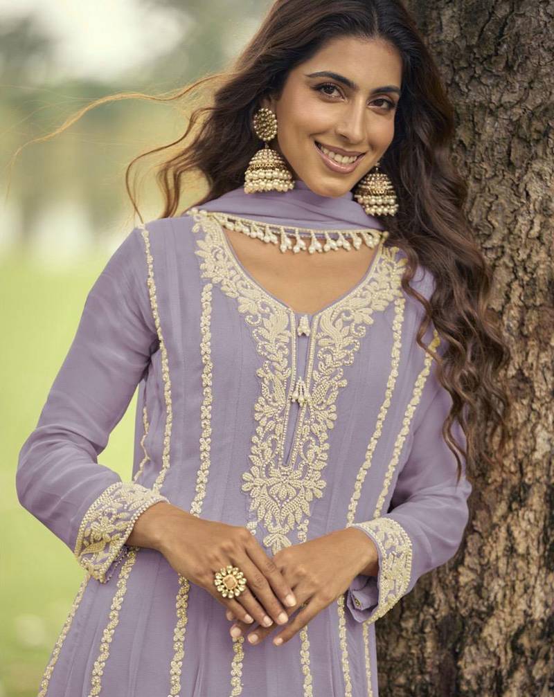 Lavendar heavy embroidery beads work gerogette anarkali straight pant-full stitched free size