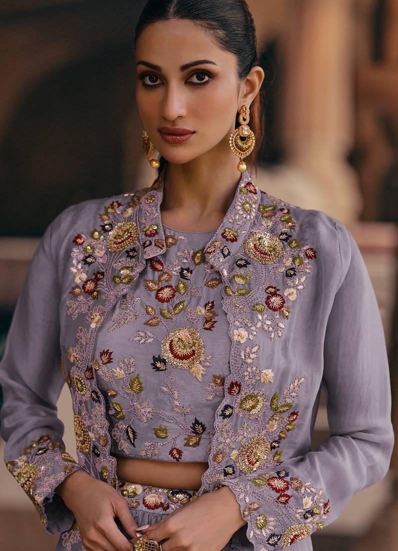Product Name Lavender Georgette Embroidered Lehenga Set