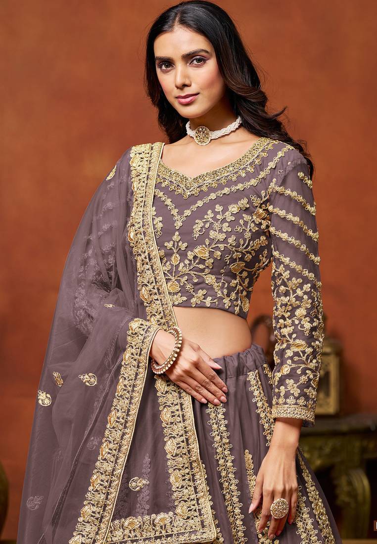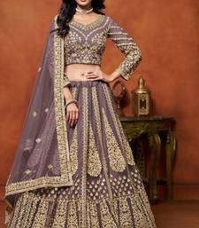 Lavender net hand embroidery semi stitched lehenga choli size up to 42
