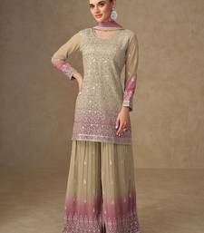 Light yellow georgette sequins work semi stitched salwar suits suits size up to 42
