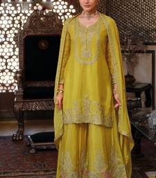 Lime green embroided chinnon straight top palazzo suit- full stitched free size