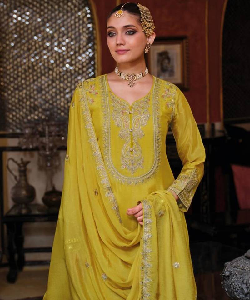 | Product Name | Lime Green Embroided Chinnon Straight Top Palazzo Suit Full Stitched Free Size | |