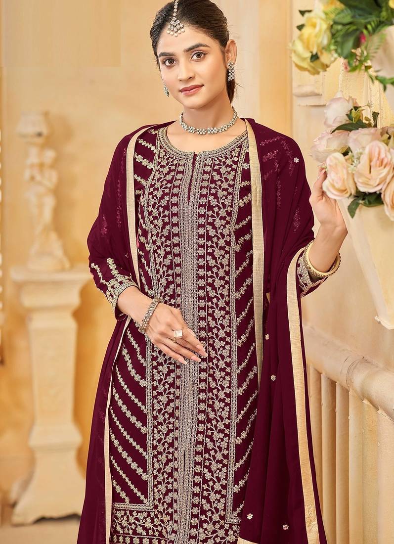 Maroon georgette zari embroidery & sequins free size stitch suit size up to 42 stitched