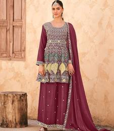 Mauve chiffon sequins work semi stitched salwar suits suits size up to 42