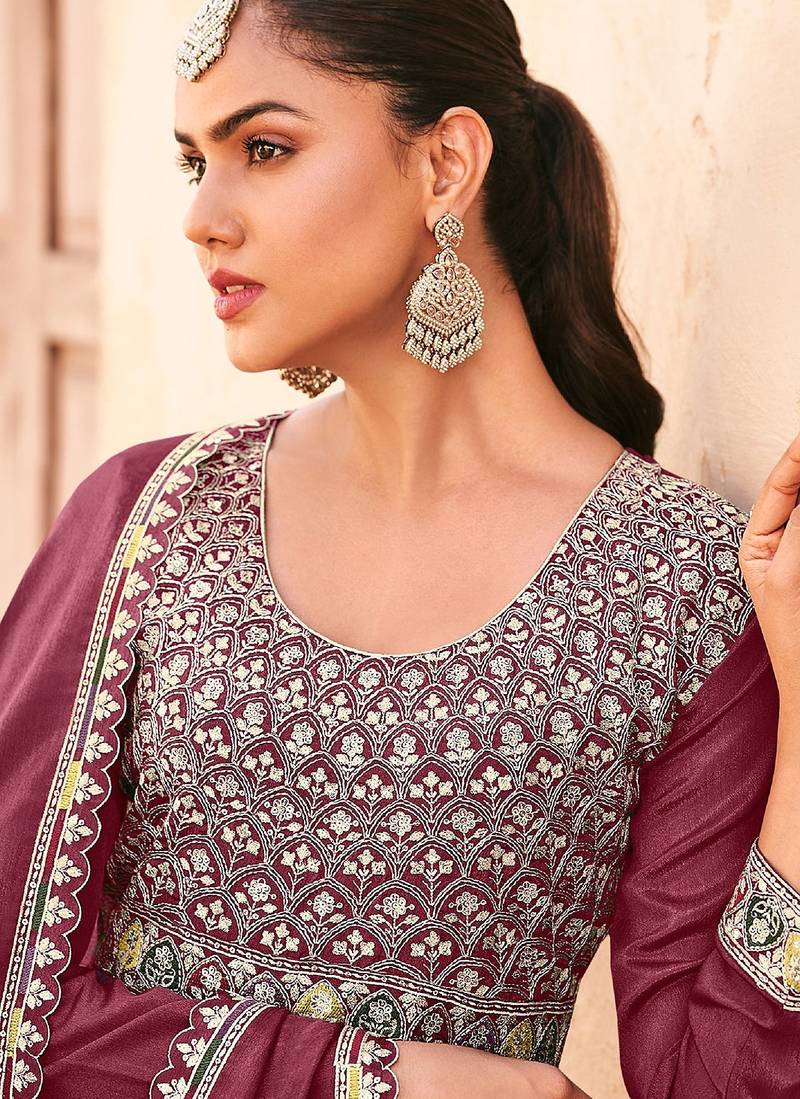 | Product Name | Mauve Chiffon Sequins Work Semi Stitched Salwar Suits Suits Size Up To 42 | |