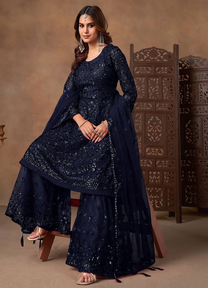 Navy blue net sequins work semi stitched salwar suits suits size up to 42