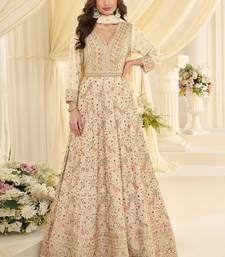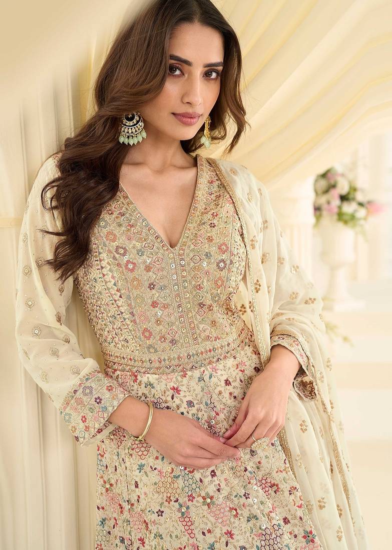 Off white georgette sequins work semi stitched salwar suits suits size up to 42