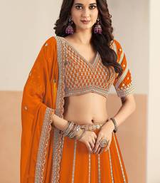 Orange georgette zari work semi stitched lehenga choli size up to 42