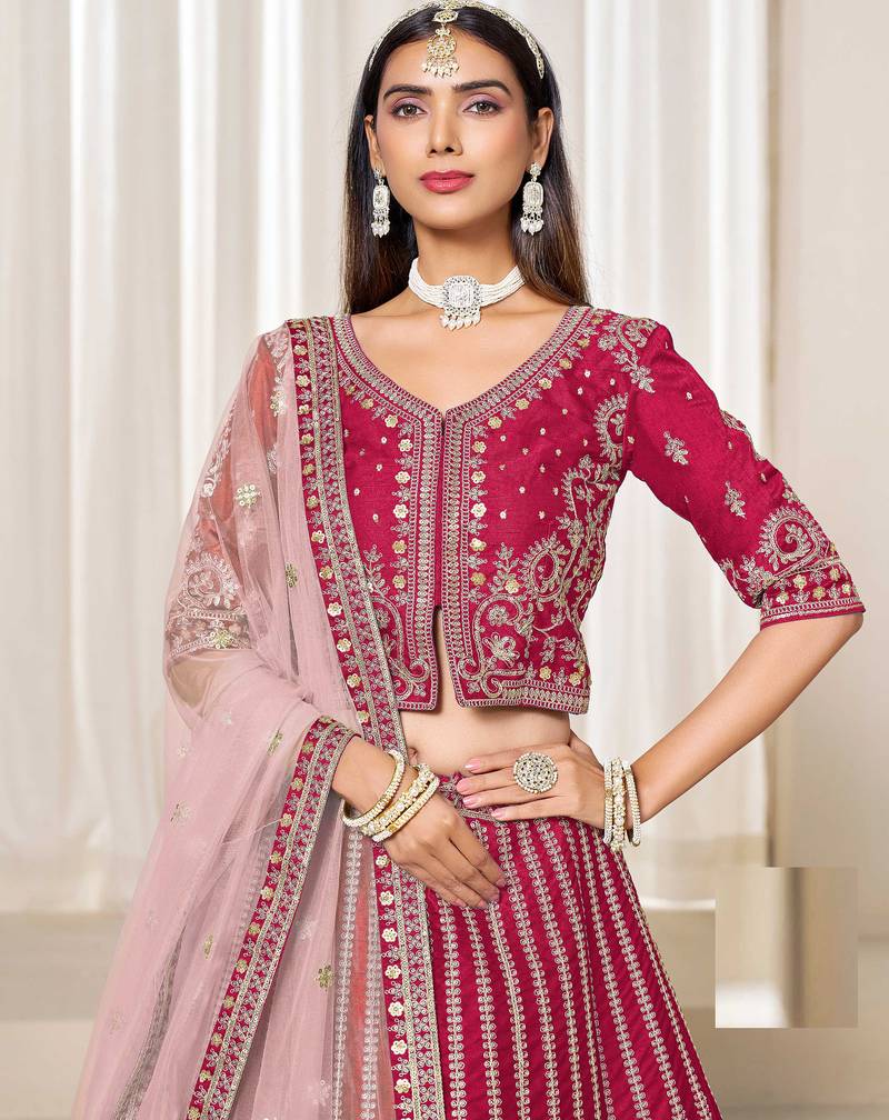 Pink art silk zari work semi stitched lehenga choli size up to 42