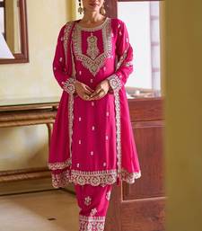 Pink chiffon mirror work semi stitched salwar suits suits size up to 42