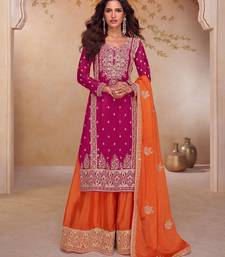 Pink chiffon sequins work semi stitched salwar suits suits size up to 42