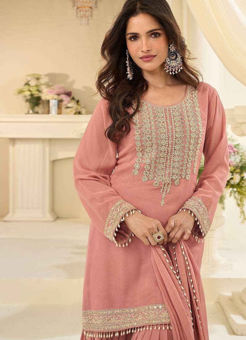 Pink georgette sequins work semi stitched salwar suits suits size up to 42