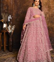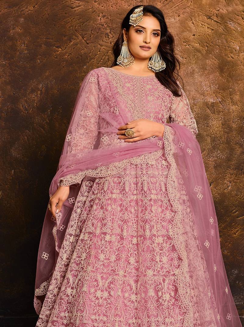Pink net hand embroidery semi stitched salwar suits suits size up to 42