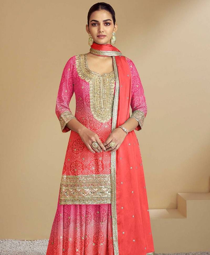 Pink silk blend hand embroidery semi stitched salwar suits suits size up to 42
