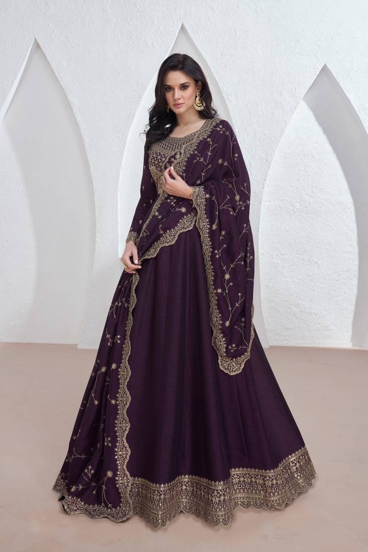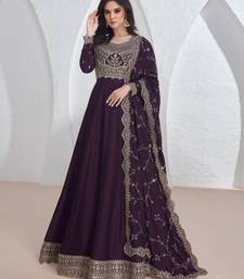 Purple embroidery & sequins silk dupatta gown- full stitched free size