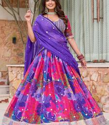 Purple organza mirror work semi stitched lehenga choli size up to 42