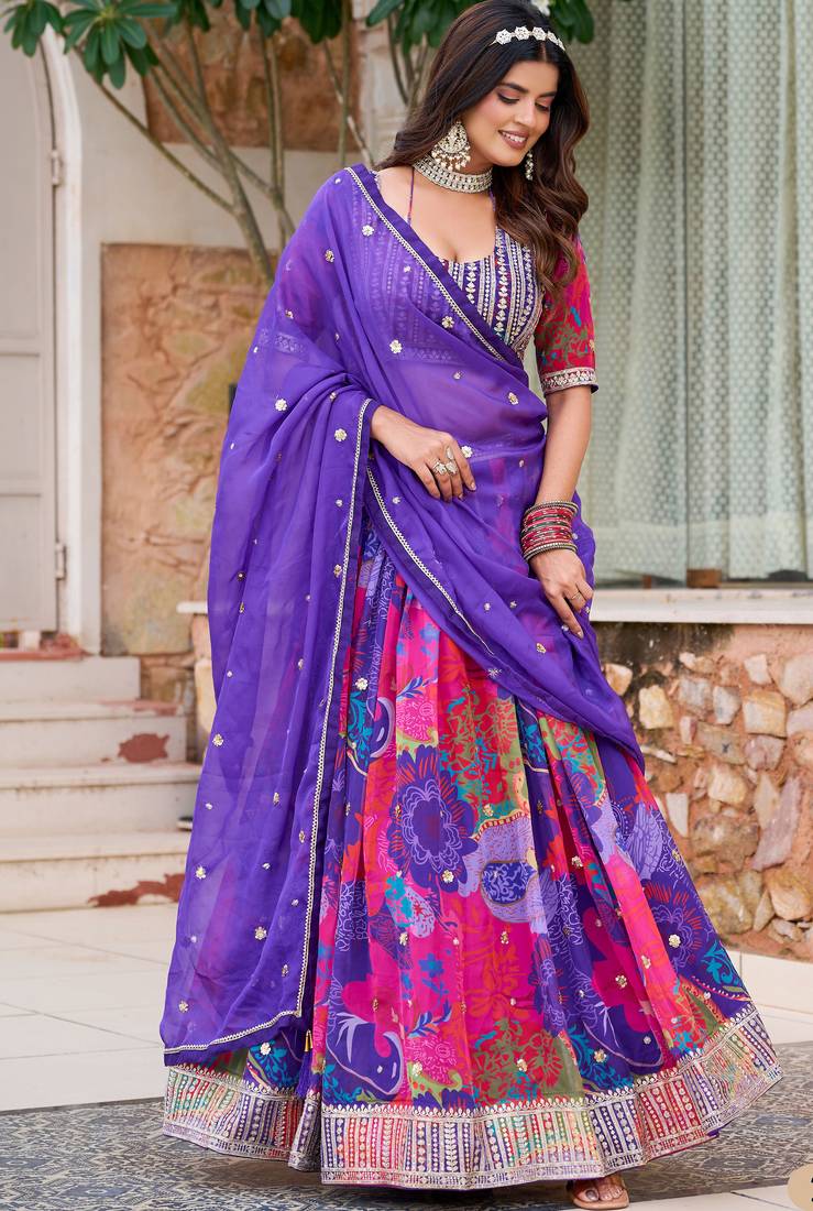 | Product Name | Purple Organza Mirror Work Semi Stitched Lehenga Choli Size Up To 42 | |