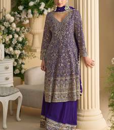 Purple thread embroidery sequins & stone georgette palazzo anarkali suit- full stitched free size