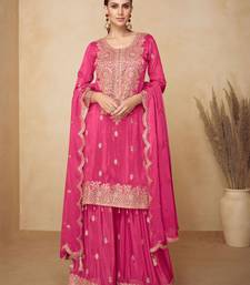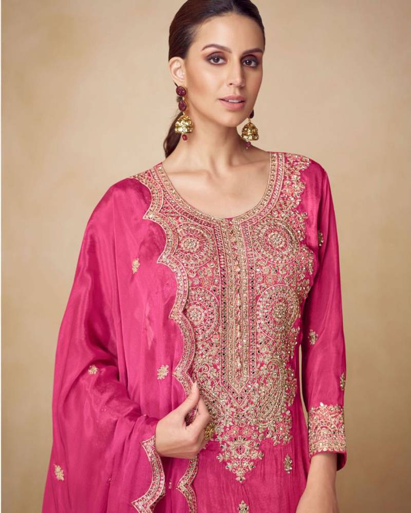 Rani pink chiffon salwar kameez- full stitched free size