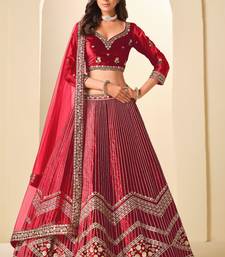 Red velvet zari work semi stitched lehenga choli size up to 42