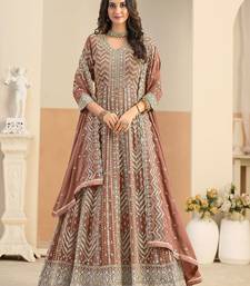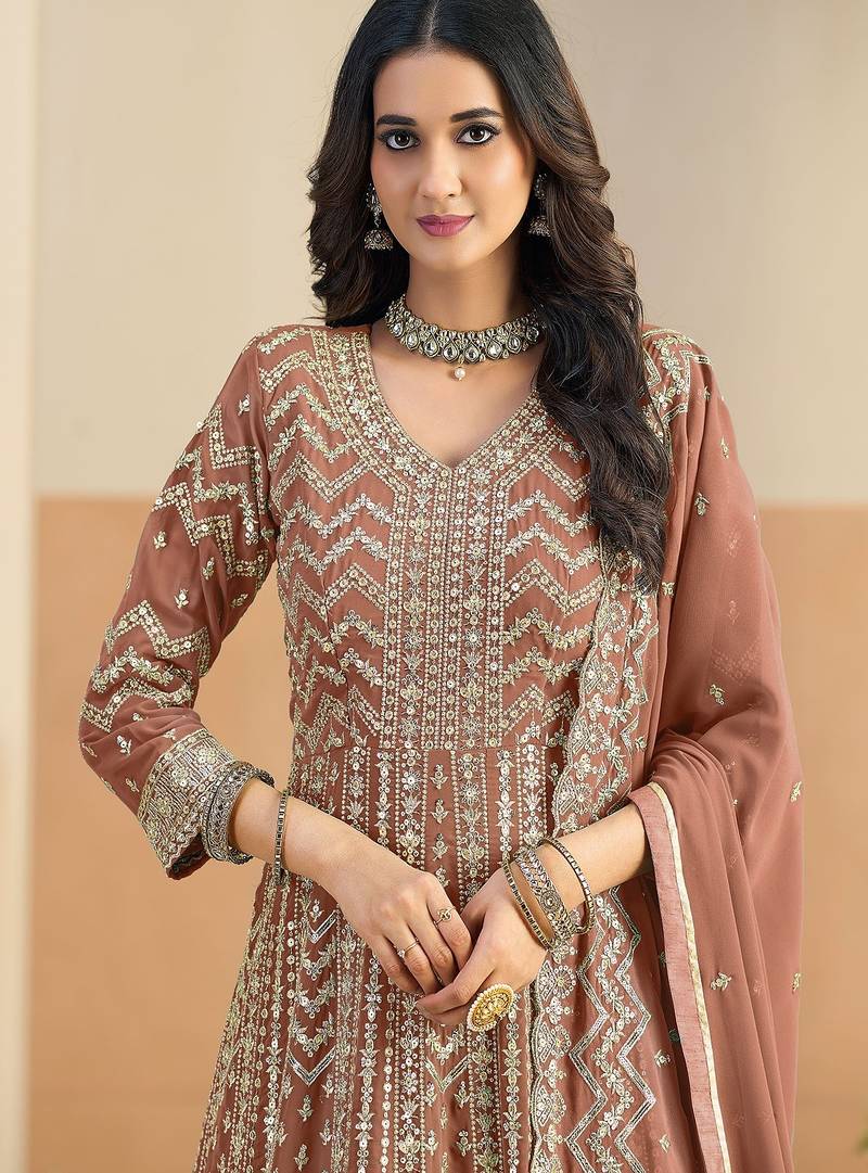 Rust georgette sequins work salwar suits free size up to 42 stitched