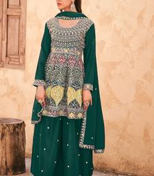 Teal green chiffon sequins work semi stitched salwar suits suits size up to 42