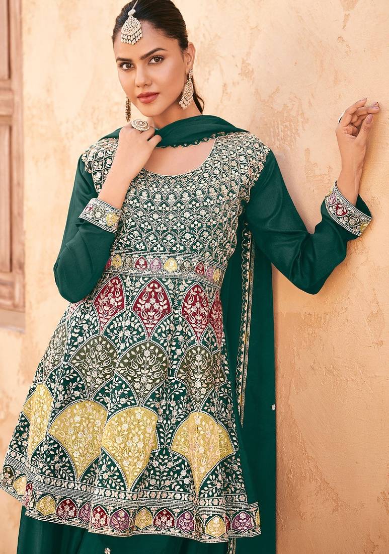 | Product Name | Teal Green Chiffon Sequins Work Semi Stitched Salwar Suits Suits Size Up To 42 | |