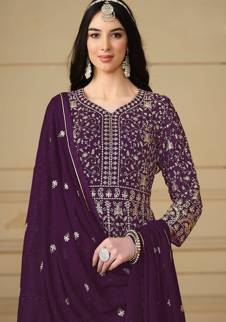 | Product Name | Wine Georgette Embroidered & Sequins Semi Stitched Suit Size Up To 42 | |