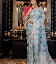 Blue woven silk blend blend saree
