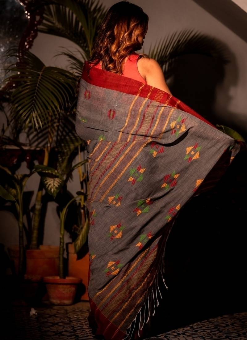 | Product Name | Grey Hand Woven Cotton Kantha Work All Seasons Sarees | |
