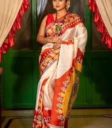 | Product Description | The Off White Pure Bishnupuri Silk Handloom Saree Is Elevated With A Bold Red Dye Accent & A Striking Multi Colour ‘Soru Tuli Batik’ Border & Pallu, Showcasing A Freehand Wax Resist Painting Technique That Is Uniquely Organic & Fluid.