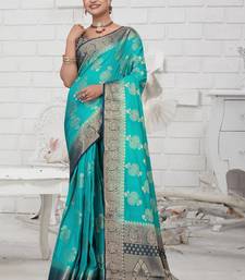 This Beautiful Aqua Blue Saree Is Crafted From Soft Crepe Fabric That Offers A Graceful Drape And Comfortable Wear. The Saree Is Adorned With Elegant Zari Woven Motifs Across The Body, Complemented By A Richly Designed Contrast Border And An Attractive Pallu With Traditional Patterns. The Intricate Zari Detailing Enhances The Overall Festive Appeal, Making It A Perfect Choice For Weddings, Festive Celebrations, And Special Events. Comes With An Unstitched Blouse Piece To Customize Your Fit And Style.