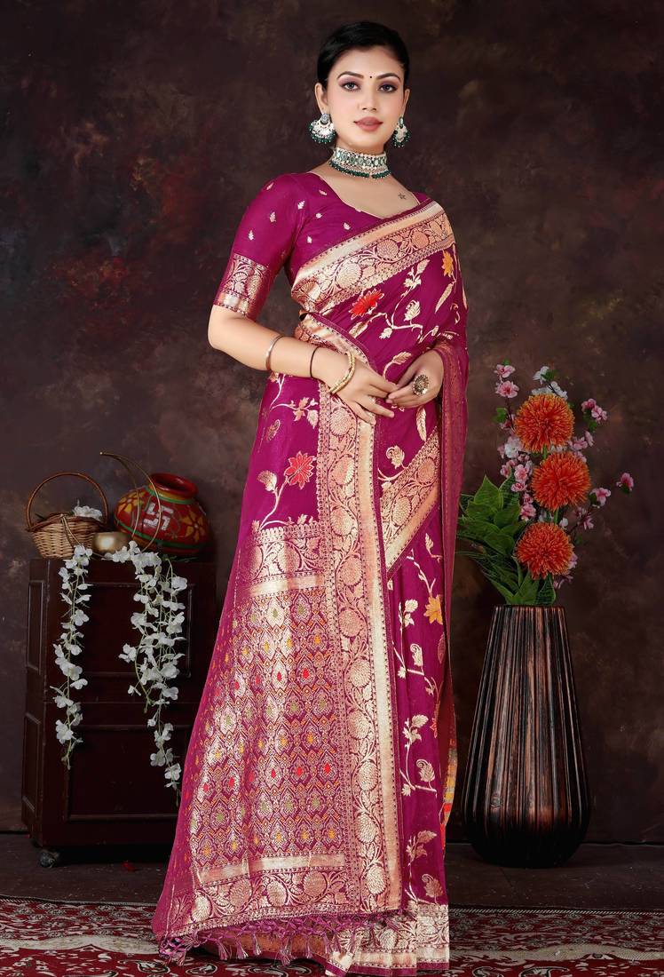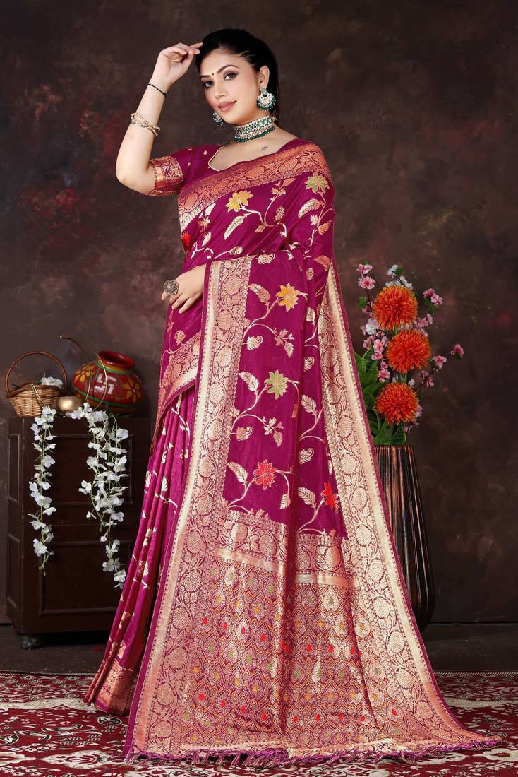 | Product Name | Magenta Dola Silk Saree With Traditional Zari & Multicolor Thread Work By Maharanga | |