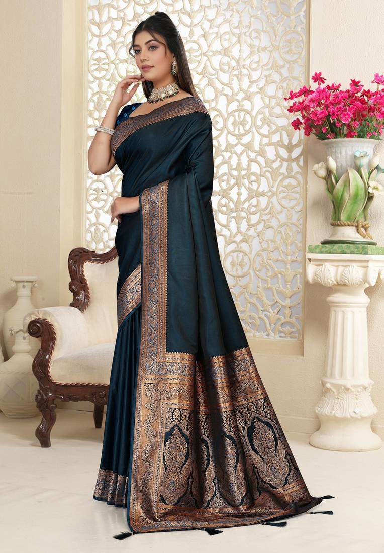 | Product Name | Navy Blue Satin Saree With Zari Woven Border & Pallu | |