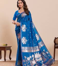 Blue zari woven banarasi soft art silk wedding saree with blouse
