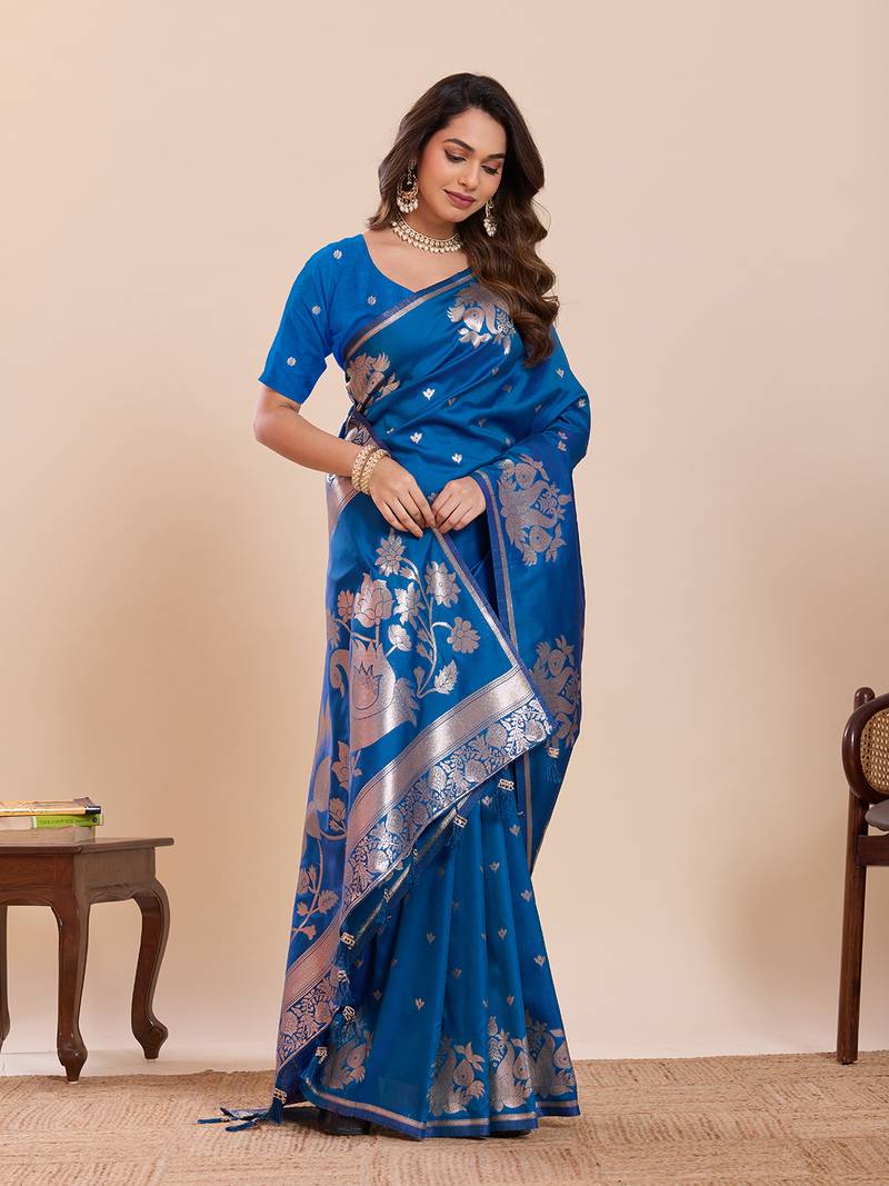 | Product Name | Blue Zari Woven Banarasi Soft Art Silk Wedding Saree With Blouse | |