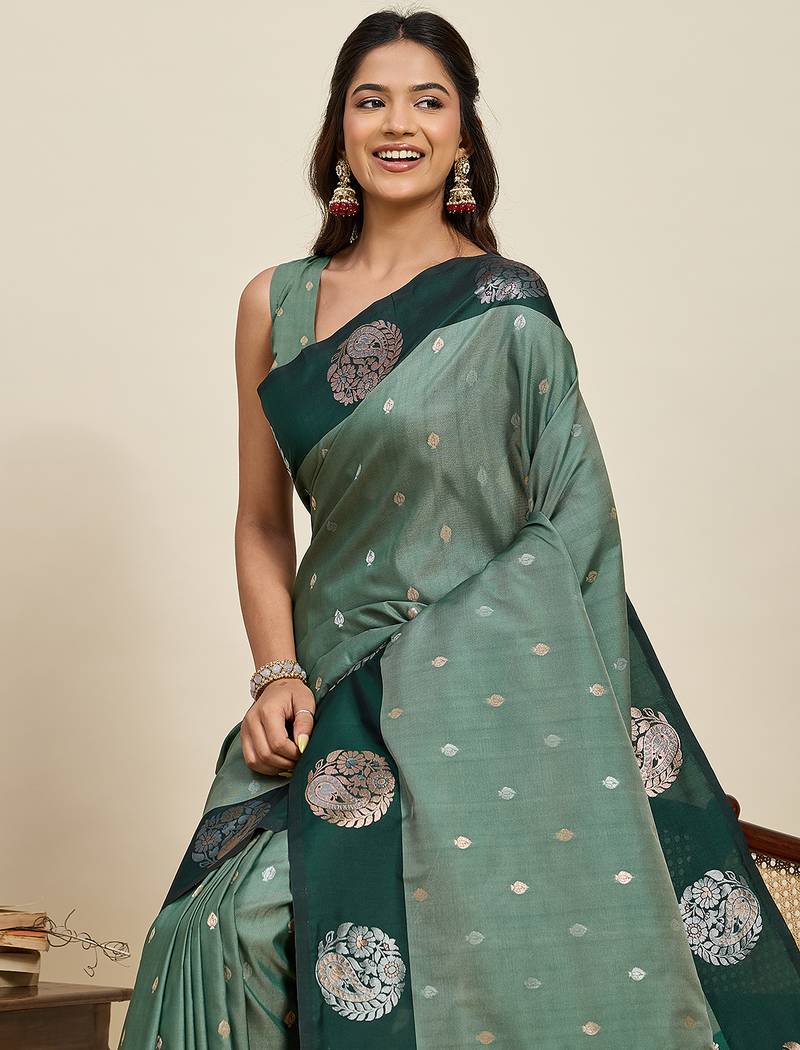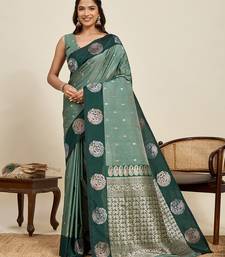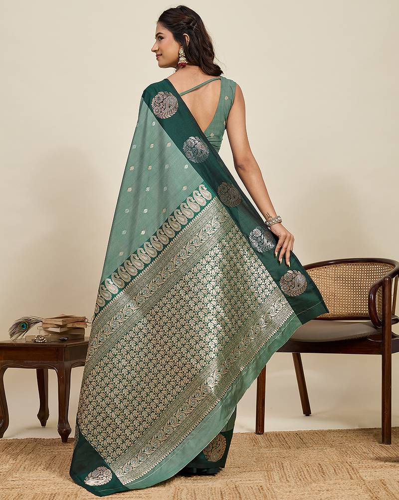 Green banarasi soft art silk saree with gold silver zari border