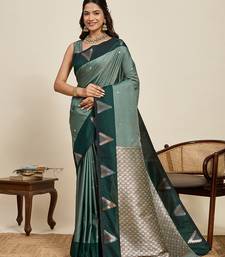 Green banarasi zari woven soft art silk traditional saree with blouse