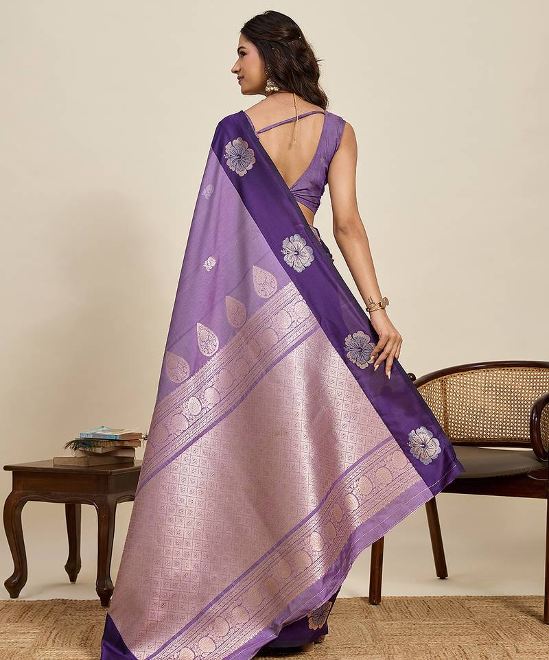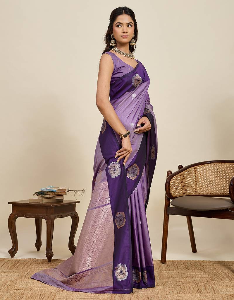 Purple zari woven banarasi art silk classic ethnic saree with blouse