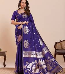 Purple zari woven panarasi soft art silk wedding saree with plouse