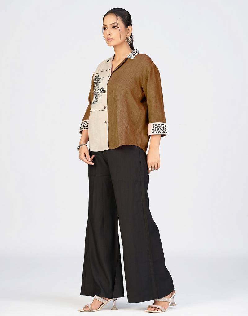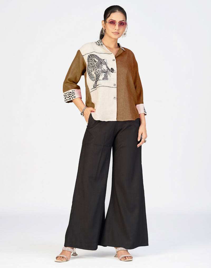 | Product Name | Women’s Brown & Cream Cotton Linen Leopard Embroidered Shirt | |
