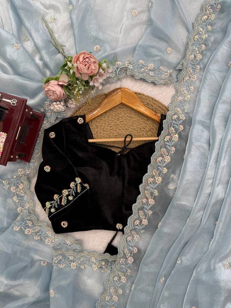 | Product Name | Grey Designer Saree With Beds Embroidery Work In Trending Fendi Silk | |